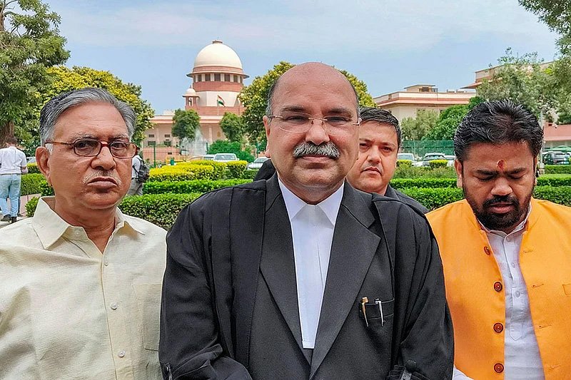 सुप्रीम कोर्ट द्वारा वक्फ (संशोधन) अधिनियम, 2025 के कई प्रमुख प्रावधानों पर रोक लगाने के बाद, लेकिन पूरे कानून पर रोक लगाने से इनकार करने के बाद, नई दिल्ली स्थित अदालत परिसर में अधिवक्ता बरुण सिन्हा मीडिया से बात करते हुए।