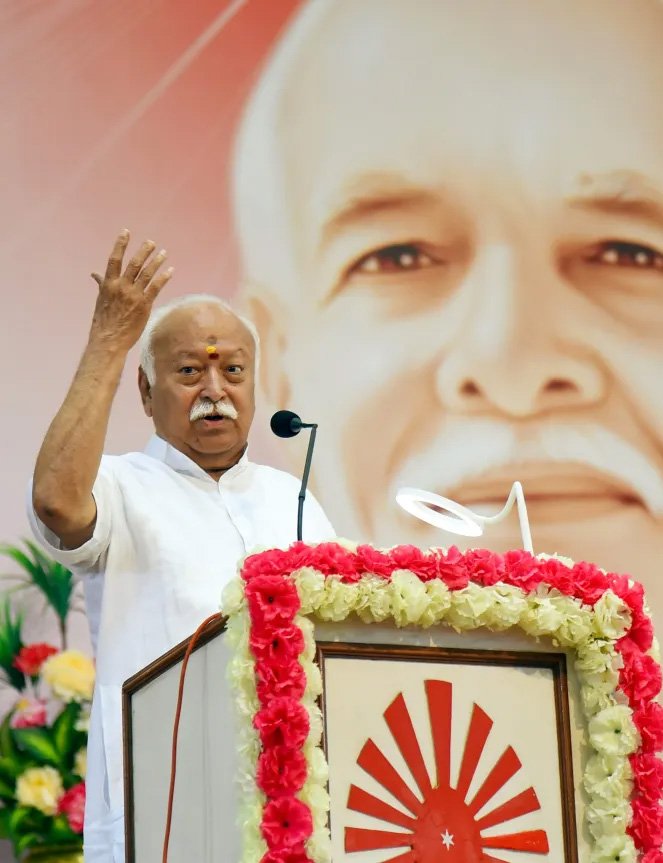 आरएसएस प्रमुख मोहन भागवत महाराष्ट्र के नागपुर में ब्रह्माकुमारीज़ द्वारा आयोजित विश्व शांति सरोवर के 7वें वार्षिक दिवस समारोह के दौरान संबोधित करते हुए।