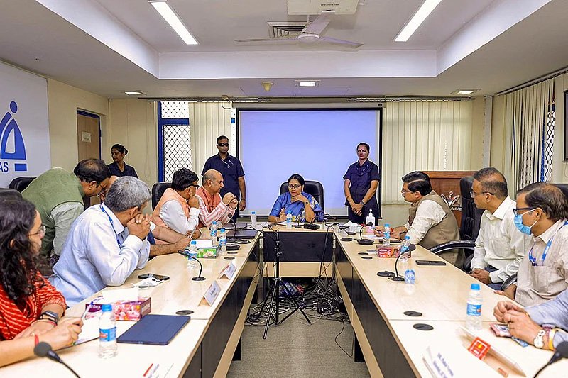 दिल्ली की मुख्यमंत्री रेखा गुप्ता नई दिल्ली के दिलशाद गार्डन स्थित आईएचबीएएस अस्पताल के निरीक्षण के दौरान एक बैठक की अध्यक्षता करती हुई।