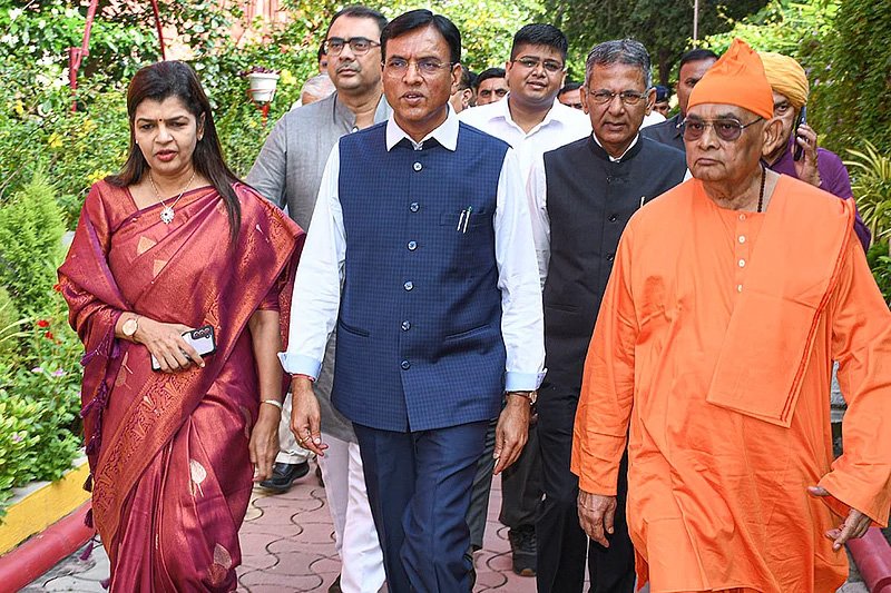 राजकोट, गुजरात में शिकागो में विश्व धर्म संसद में स्वामी विवेकानंद के भाषण की 132वीं वर्षगांठ के अवसर पर श्री रामकृष्ण आश्रम में राष्ट्रीय युवा सम्मेलन के दौरान केंद्रीय युवा मामले और खेल मंत्री मनसुख मंडाविया।