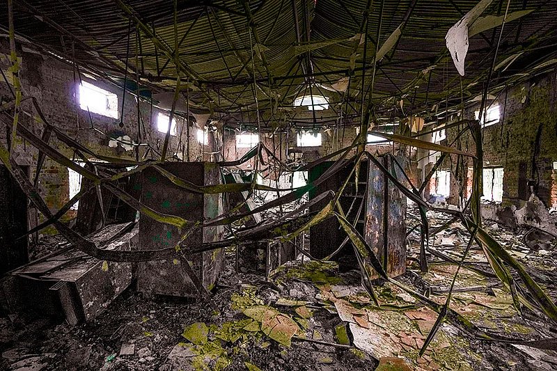 नेपाल के सरकार विरोधी प्रदर्शनों के बाद परसा जिले के बीरगंज में एक जला हुआ ढांचा खंडहर में पड़ा है।