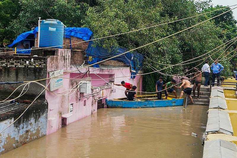 नई दिल्ली में यमुना नदी का जलस्तर लगातार बढ़ रहा है, इसलिए लोग बाढ़ग्रस्त इलाकों से नाव के ज़रिए आवाजाही कर रहे हैं। अधिकारियों ने बताया कि बुधवार दोपहर 1 बजे पुराने रेलवे पुल (ओआरबी) पर यमुना नदी का जलस्तर 207 मीटर तक पहुँच जाने के बाद, निचले बाढ़ग्रस्त इलाकों से 7,500 से ज़्यादा लोगों को निकाला गया है।