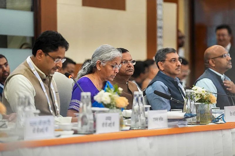 नई दिल्ली में 56वीं जीएसटी परिषद की बैठक के दौरान वित्त मंत्री निर्मला सीतारमण, केंद्रीय वित्त राज्य मंत्री पंकज चौधरी और राजस्व सचिव अरविंद श्रीवास्तव।