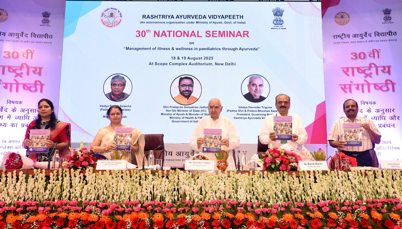 नई दिल्ली में राष्ट्रीय आयुर्वेद विद्यापीठ द्वारा आयोजित "आयुर्वेद के माध्यम से बाल चिकित्सा में रोग एवं स्वास्थ्य प्रबंधन" विषय पर 30वें राष्ट्रीय संगोष्ठी के उद्घाटन की झलकियाँ।