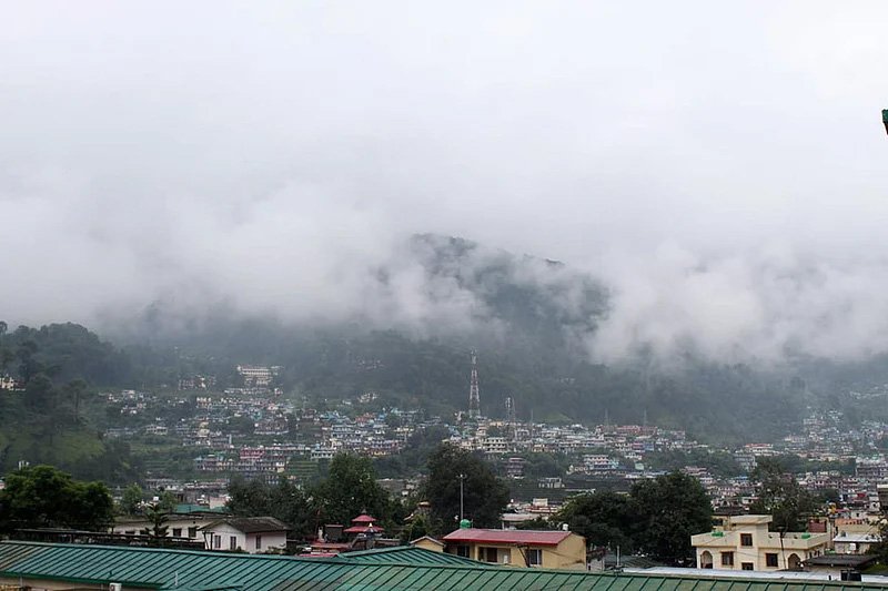 उत्तरकाशी में बारिश के बाद पहाड़ों पर छाए निचले बादल।