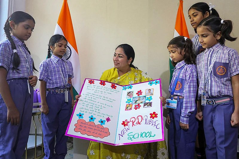 दिल्ली की मुख्यमंत्री रेखा गुप्ता ने नई दिल्ली में मुख्यमंत्री जन सेवा सदन में स्कूली छात्रों के साथ रक्षाबंधन मनाया।