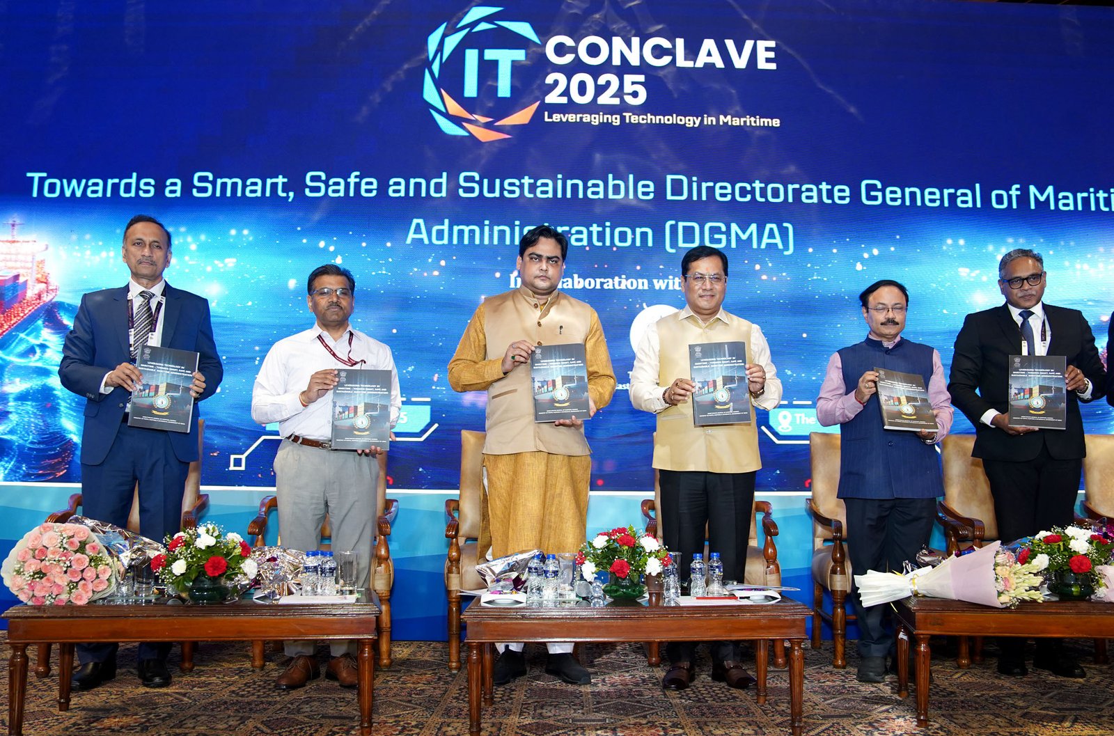 केंद्रीय पत्तन, पोत परिवहन और जलमार्ग मंत्री सर्बानंद सोनोवाल और पत्तन, पोत परिवहन और जलमार्ग राज्य मंत्री शांतनु ठाकुर नई दिल्ली में आईटी कॉन्क्लेव 2025 के उद्घाटन सत्र में।