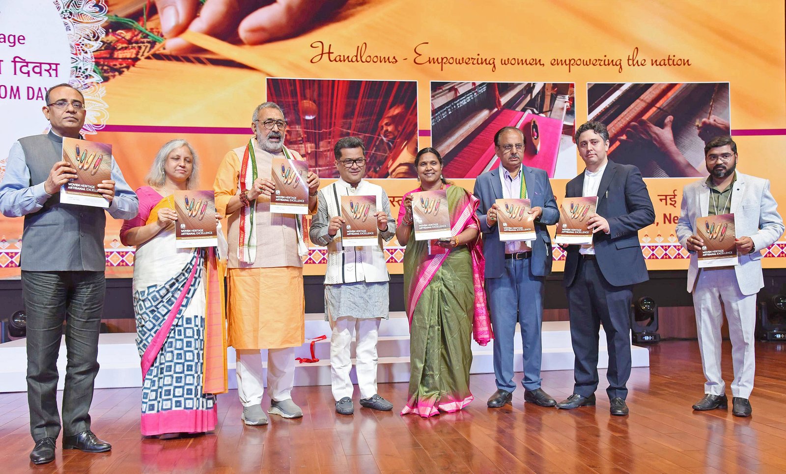 केंद्रीय कपड़ा मंत्री गिरिराज सिंह नई दिल्ली में भारत मंडपम में 11वें राष्ट्रीय हथकरघा दिवस 2025 के उद्घाटन के अवसर पर। साथ में विदेश और कपड़ा राज्य मंत्री पबित्रा मार्गेरिटा भी हैं।