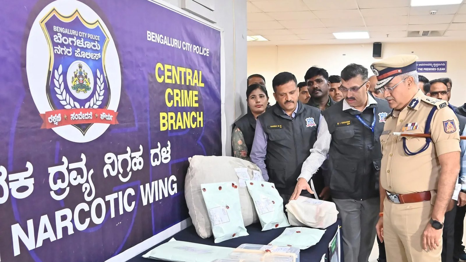पुलिस आयुक्त सीमांत कुमार सिंह सोमवार, 29 सितंबर, 2025 को बेंगलुरु में आयुक्त कार्यालय में 9.93 करोड़ रुपये मूल्य की जब्त की गई दवाओं का निरीक्षण करते हुए।