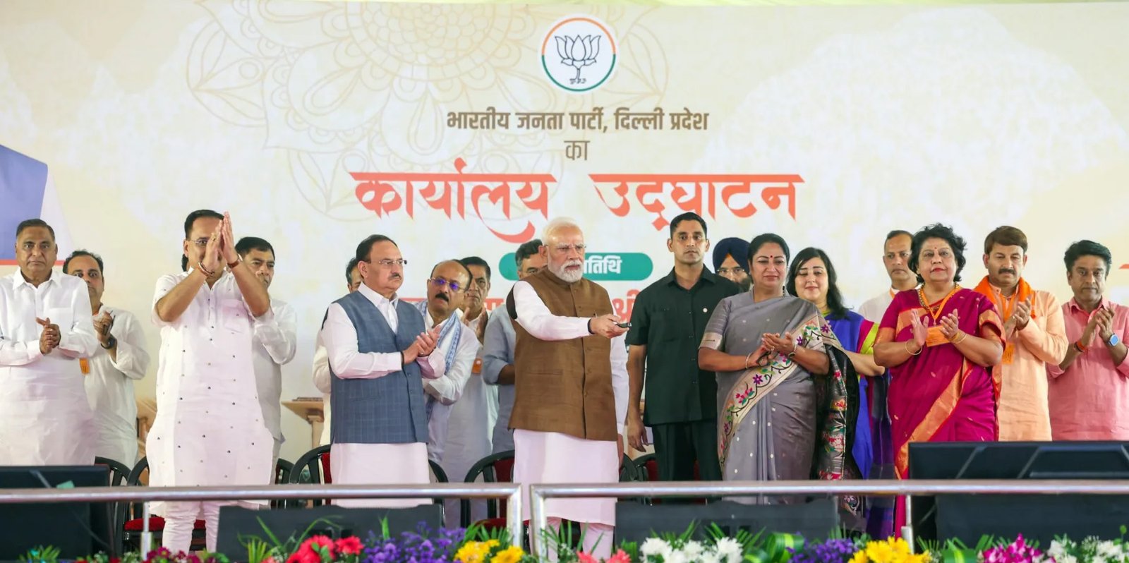 प्रधानमंत्री नरेंद्र मोदी ने नई दिल्ली में दिल्ली भाजपा कार्यालय का उद्घाटन किया. साथ में केंद्रीय मंत्री और भाजपा के राष्ट्रीय अध्यक्ष जेपी नड्डा, दिल्ली की मुख्यमंत्री रेखा गुप्ता और दिल्ली भाजपा अध्यक्ष वीरेंद्र सचदेवा भी मौजूद हैं।