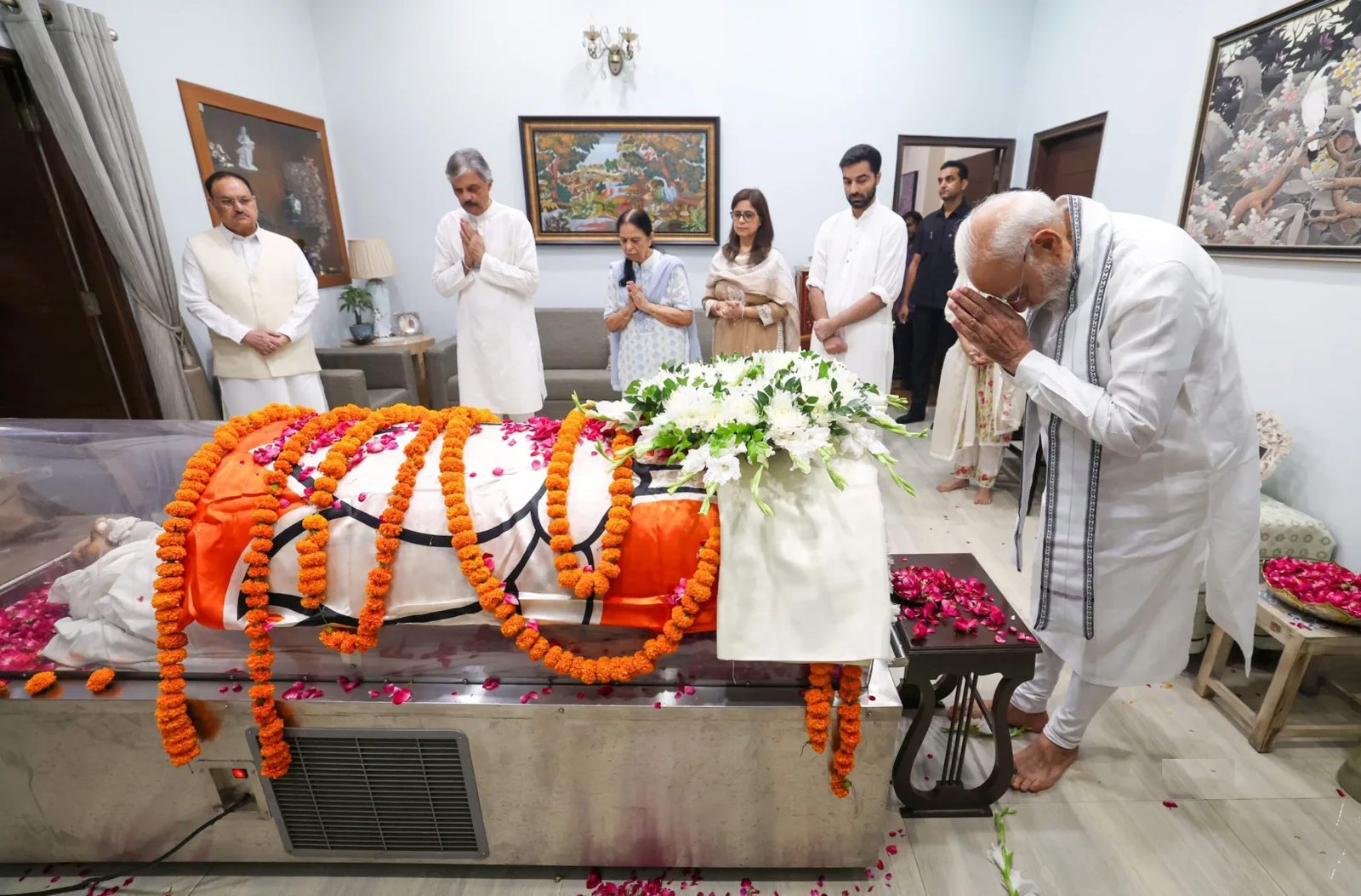 प्रधानमंत्री नरेंद्र मोदी ने मंगलवार, 30 सितंबर, 2025 को वरिष्ठ भाजपा नेता विजय कुमार मल्होत्रा के पार्थिव शरीर को नई दिल्ली स्थित उनके आवास पर श्रद्धांजलि अर्पित की। वीके मल्होत्रा का आज सुबह 93 वर्ष की आयु में एम्स में निधन हो गया।
