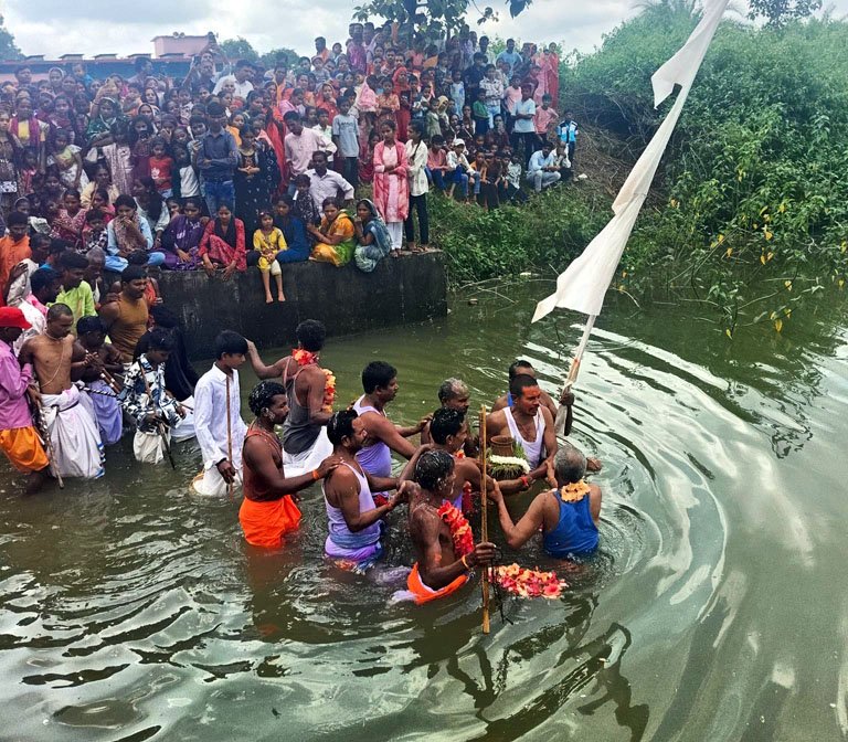 नगरी, 01 अक्टूबर (आरएनएस)। शीतला शक्ति पीठ सिहावा में शारदीय नवरात्रि में ज्योत ज्वारा विसर्जन परम्परानुसार किया गया।इस दौरान श्रद्धालुओं की भीड़ रही।महा नवमी की प्रात: सरोवर स्न्नान के लिये शोभा यात्रा प्रारंभ हुआ जो शीतला तालाब में ,पहुँच कर ज्वारा विसर्जित की गई। ऋषि पंचमी सेवा मण्डली गणेश घाट सिहावा द्वारा गाये जा रहे माता सेवा के साथ गढ़ की देवी देवताये अपने पूरे स्वरूप में डांग ,बाना आदि लिये हुए विसर्जन शोभायात्रा में झूमते रहे।माता तालाब मे विधि विधान से विसर्जन उपरांत श्रद्धालुओं को प्रसाद वितरित किये गए।नवमी के अवसर पर माता का विशेष श्रृंगार कर पूजा अर्चना किया गया
