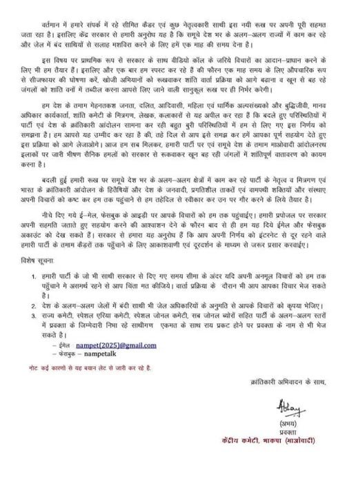 ( जगदलपुर) माओवादियों के शांति वार्ता के संकेत से हलचल, स्विट्जरलैंड से जुड़ा मिला पत्र का स्रोत