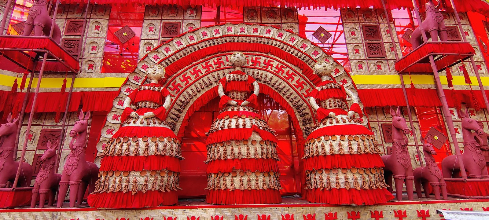 लाल मैदान पावर हाउस में ढोकरा शिल्प की 3 हजार मूर्तियों से सुसज्जित मां अंबे का सज रहा भव्य दरबार